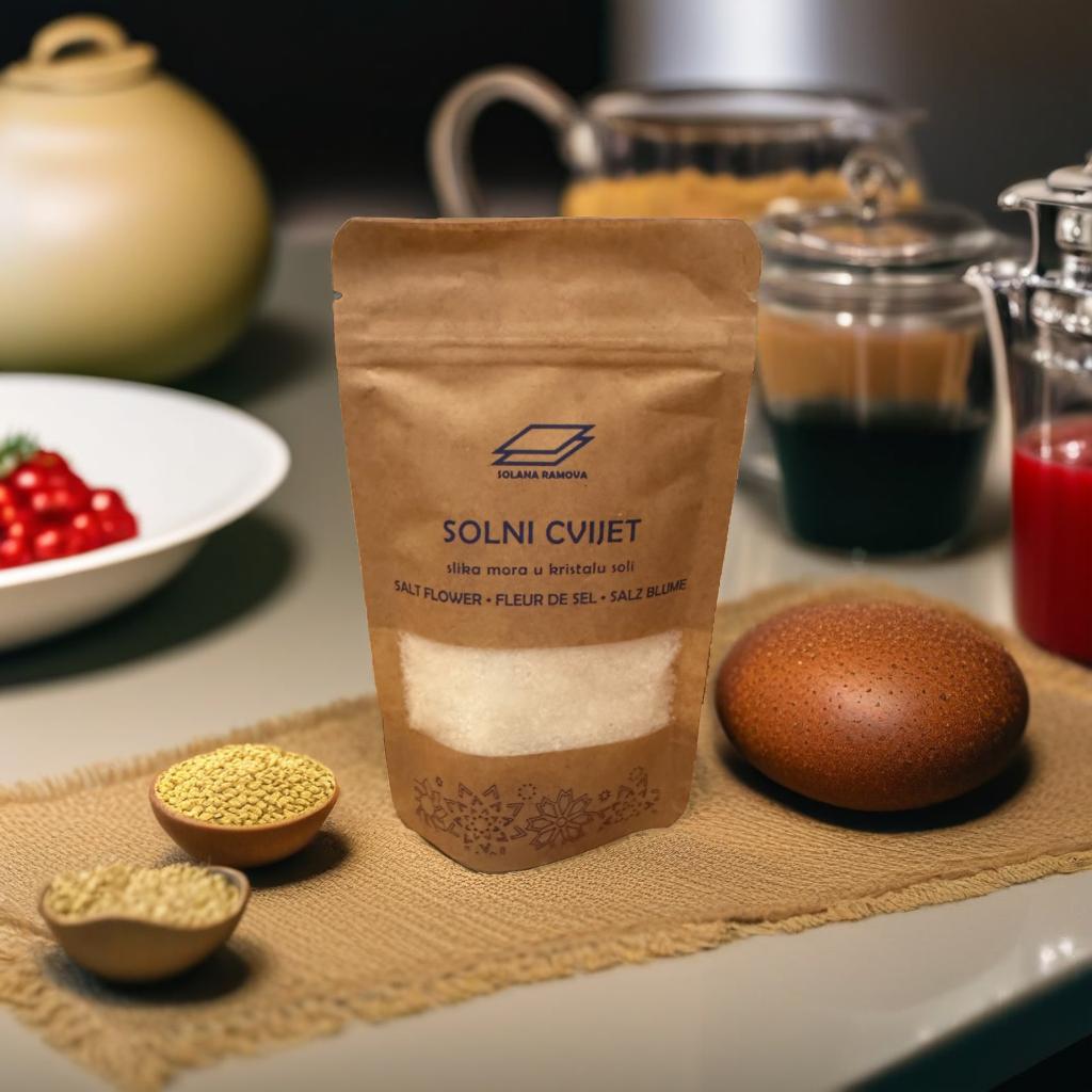 Květ soli je další unikátní výrobek z našeho jedinečného chorvatského solnomořského sortimentu. Jedná se potravinu čistě přírodního původu a charakteru, potravinu bez jakékoliv chemické úpravy, bez pasterizace, bez aditiv apod.